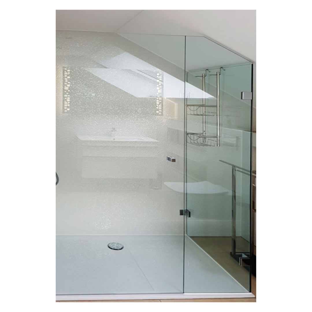Dachschrägen-Duschen gehören zu unseren häufigsten Sonderanfertigungen. Das Glas wird exakt auf die Neigung Ihres Dachs zugeschnitten — mit Ausschnitten für Dachfenster, Stützbalken oder Vorsprünge.