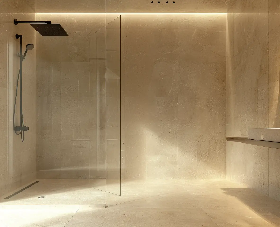 Kein Rahmen, keine Tür, keine Schwelle — offene Duschen schaffen maximales Raumgefühl und sind die pflegeleichtesten aller Duschtypen. Ideal für modernes Design und barrierefreies Wohnen. Der Nachteil: Wärme und Dampf bleiben nicht in der Dusche — wer das bevorzugt, ist mit einer Duschkabine besser beraten.