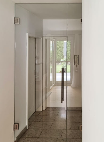 Moderne Ganzglasanlagen auch mit Sichtschutzfolie. Transparente Raumgestaltung ohne Zarge...