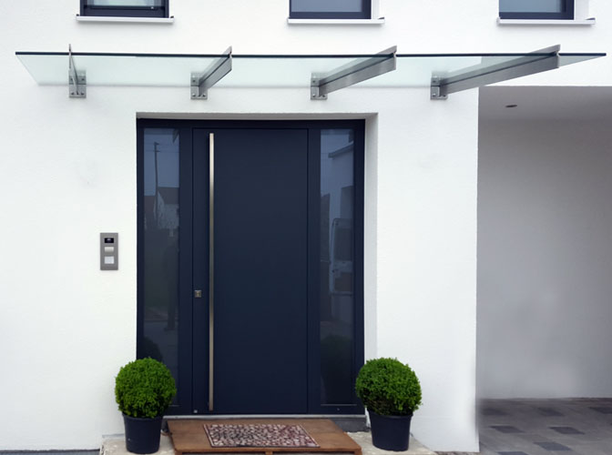 Schützen Sie sich vor Witterungseinflüssen und verleihen Sie Ihrem Eingangsbereich eine moderne Optik mit einem professionell montierten Glasvordach mit Zulassung.