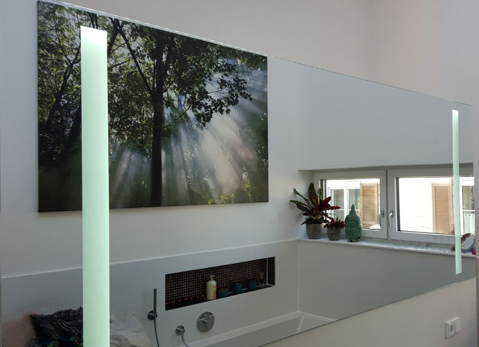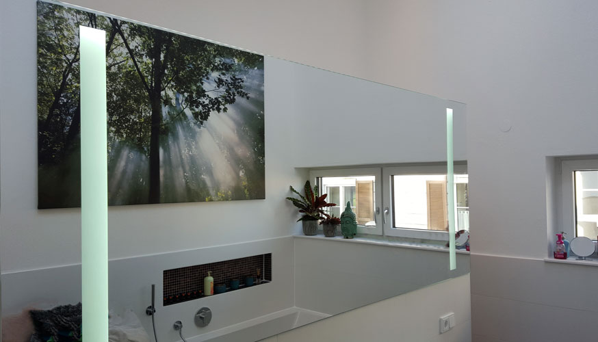 Wir bieten Ihnen Maßanfertigungen für Spiegel in verschiedenen Design und Stil. Ob Wandspiegel mit LED Beleuchtung, rechteckige Spiegel mit Facettenschliff, runde Spiegel mit geschliffenen Kanten oder eine andere Form - fast alles ist möglich.