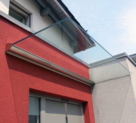 Freitragendes Glasvordach
