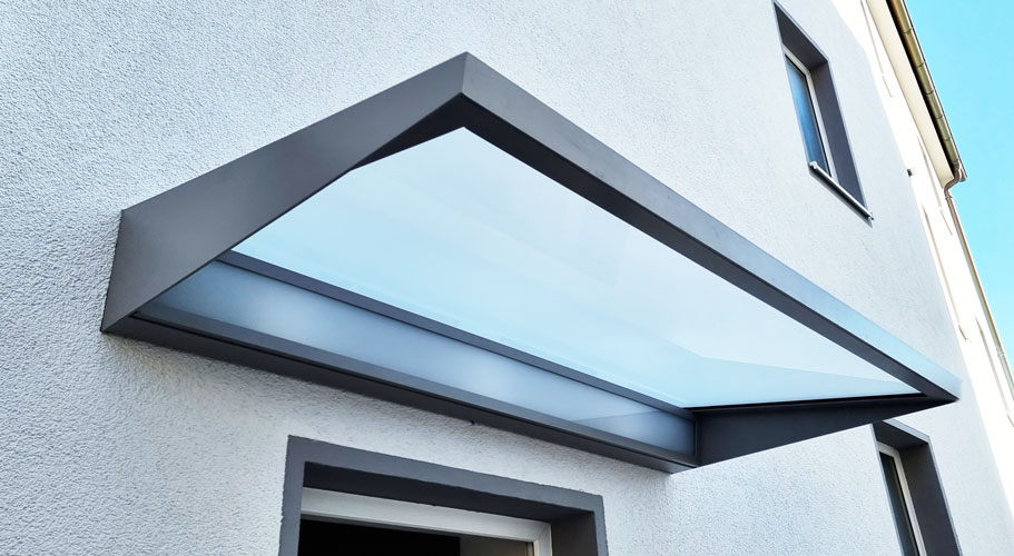 Ein freitragendes Vordach hat keine sichtbaren Stützen oder Befestigungen und ist ideal für moderne Architektur...